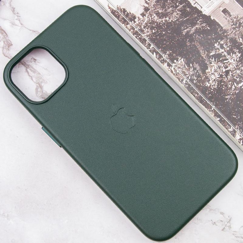 Кожаный чехол Leather Case (AAA) with MagSafe and Animation для Apple iPhone 13 (6.1’’) Зеленый, Категория – Чехлы, Форм-фактор чехла – Накладка, Материал аксессуара – Искусственная кожа, Особенности чехла – MagSafe, Внутренняя отделка чехла – Микрофибра