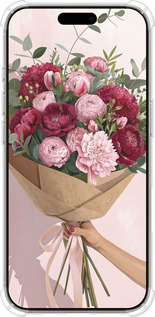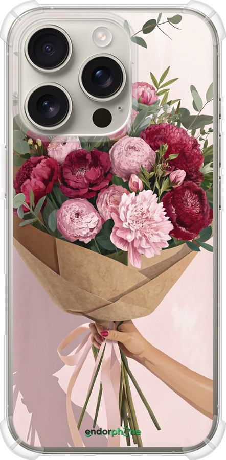 Купити силіконовий протиударний с посиленими кутами чохол для iPhone 16 Pro 'Півонії 1' в Україні, замовити за найкращою ціною з доставкою в інтернет-магазині Endorphone.